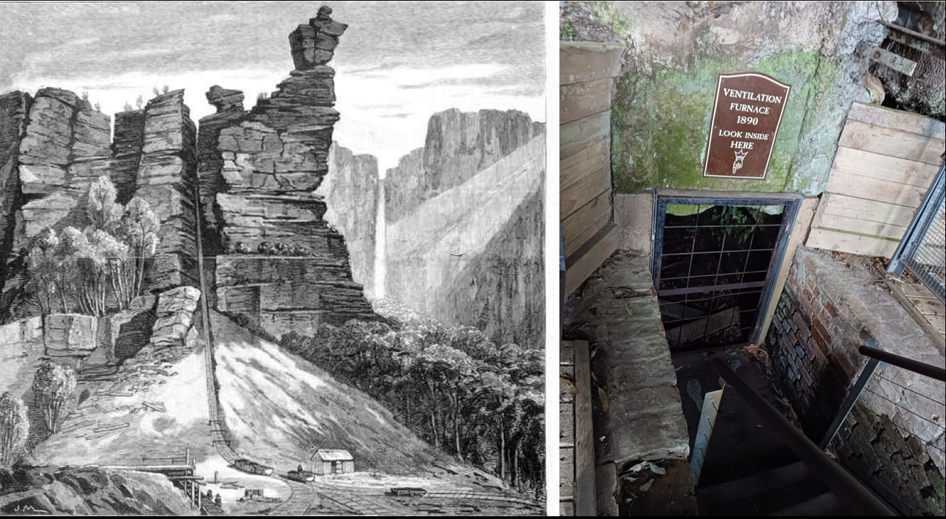 그림 1. 호주 카툼바 석탄광산의 환기용 가열로. 호주의 유명한 관광지인 블루마운틴에 있는 카툼바 석탄광산. 1980년대 온돌과 비슷한 환기시스템을 고안하였습니다. 겨울에는 광산 안의 기온은 높고 밖은 낮아서 자연환기가 잘 이루어졌습니다. 그런데 여름은 기온차가 크지 않아 인위적으로 환기용 가열로(ventilation furnace)를 만들어 공기를 순환시켰습니다. 아궁이와 부넘기