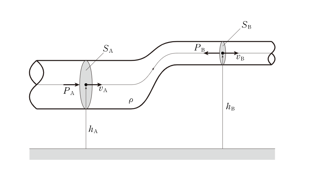 그림 3. 같은 시간 t 동안 한 면적을 통과한 유체의 질량은 보존돼야 한다. 관의 단면적의 크기와 유체의 속력은 서로 반비례한다. 덕트 역할을 하는 고래